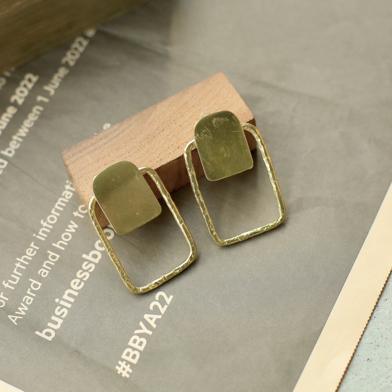 ゴールド×べっ甲風 スクエアピアス