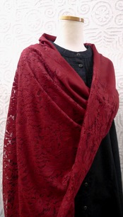 Diagolnal Lace カシミヤレースストール Garnet