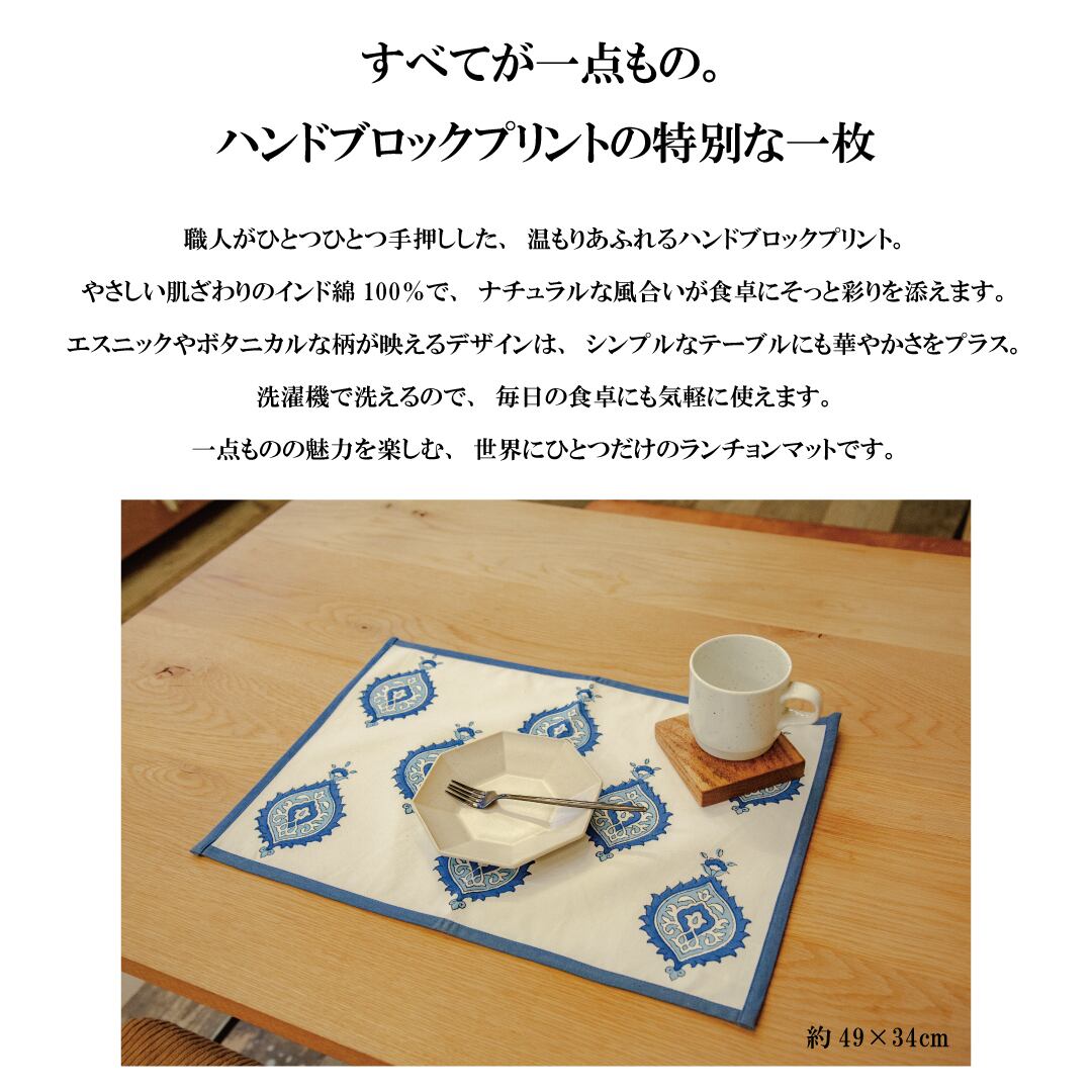 インドの山岳に茂る生き生きとした葉をイメージしてデザインされたランチョンマット
